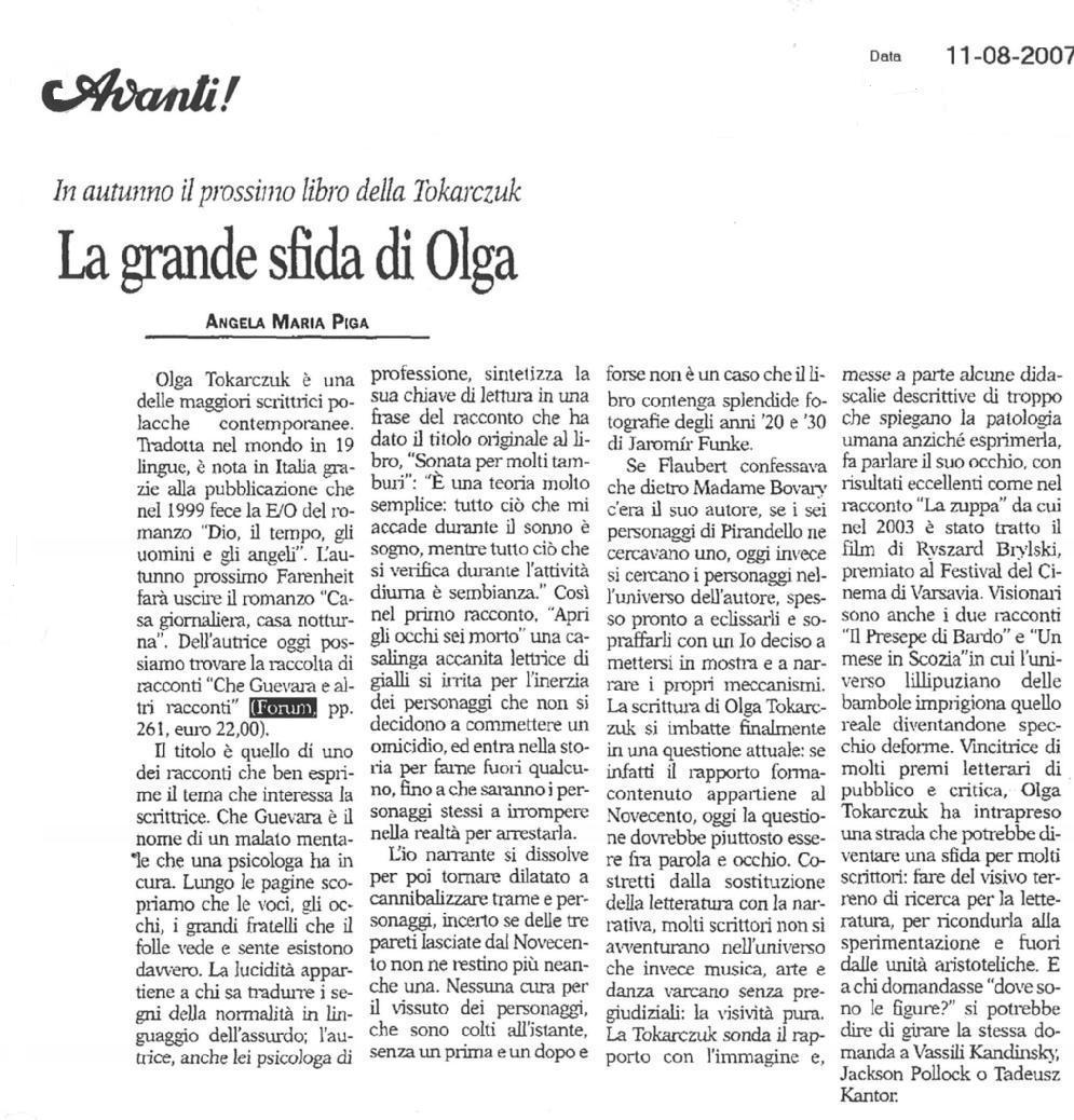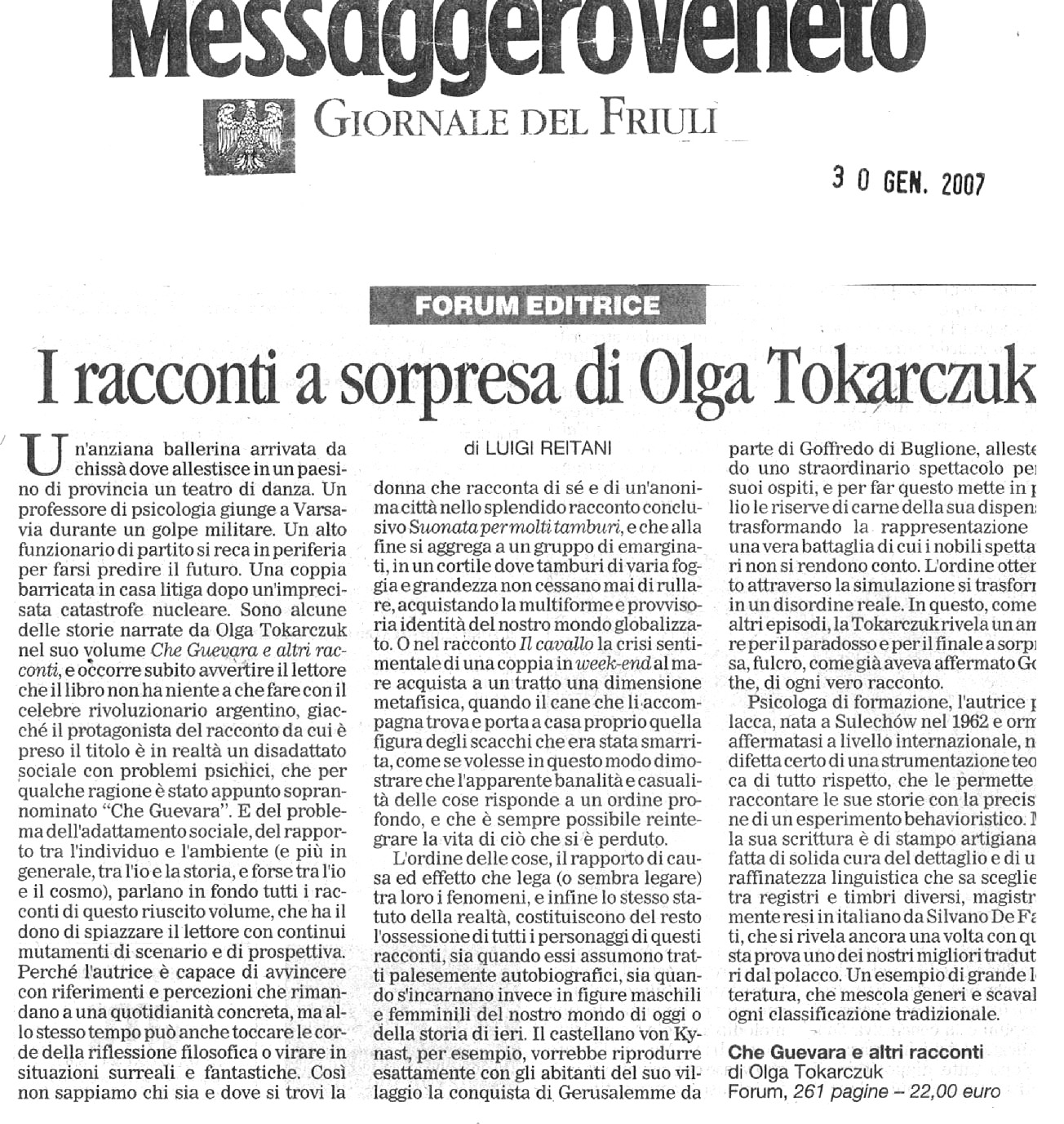 In questo libro i personaggi conducono una vita monotona in bilico tra la rassegnazione alla normalità e il desiderio, o l’ineluttabilità, di lasciarsi andare all’ignoto, al nuovo. Che accade all’identità dell’uomo abbandonato al proprio istinto, libero da forme e costrizioni socio-culturali, sottratto agli schemi abituali? L’impatto tra l’esistenza concreta e quella onirica e visionaria genera ora il dramma, ora l’ironia. Olga Tokarczuk – psicologa di formazione – porta questo contrasto alle estreme conseguenze, dando vita a un’originale galleria di donne, personalità fragili dalle potenzialità nascoste, capaci di conferire alla realtà immaginata un aspetto sconcertante di verità che il mondo ‘normale’ non è in grado di cogliere.