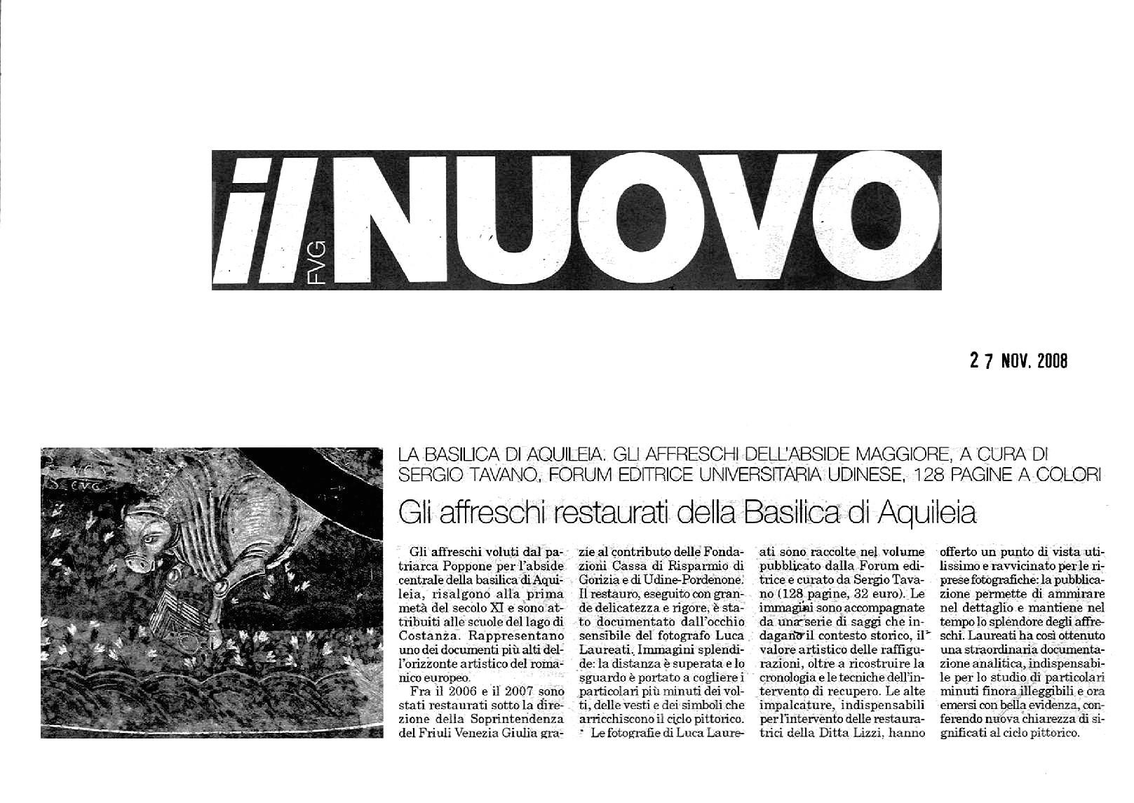 Il volume documenta il recente restauro degli affreschi absidali della Basilica di Aquileia, consentendo di ammirare, nel dettaglio e nel tempo, il prezioso lavoro eseguito. Grazie al ricco corredo fotografico di Luca Laureati, che propone solo una parte delle migliaia di foto scattate nel corso dei lavori di ripristino, e ai contributi scientifici che offrono una contestualizzazione storica sui significati e i valori artistici dell’apparato decorativo, il libro costituisce un’eccellente guida per una migliore lettura degli affreschi.