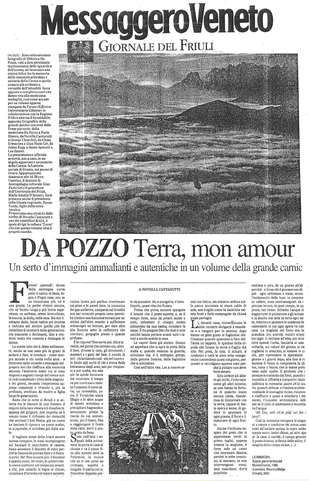 Da due decenni, con occhi curiosi e attenti, l’autrice fruga la sua Carnia trasformandola in immagini. Vecchio e nuovo, mescolanza e cambiamento. È stato detto bene: la Carnia più vera è quella che mette i gerani alle finestre per sé, per proprio gusto, non per i turisti. La Carnia è mutata, ma nonostante le spoliazioni materiali e mentali ha ancora una natura sufficientemente preservata e non ha abbandonato il vecchio: ha saputo in parte miscelarlo e in parte metterlo sotto piega. Ha come steso un velo di modernità sopra ciò che c’era, senza buttarlo, basta sollevare il velo per ritrovare quello che si era vissuto qualche decennio fa. Il volume documenta la Carnia e la sua trasfigurazione.