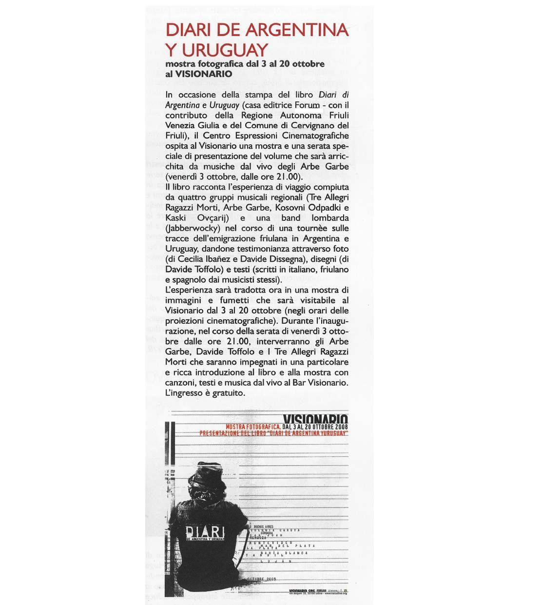 Il volume racconta l’esperienza di viaggio compiuta da quattro gruppi musicali friulani (Tre Allegri Ragazzi Morti, Arbe Garbe, Kosovni Odpadki e Kraški Ovčarji) e una band lombarda (Jabberwocky) nel corso di una tournée sulle tracce dell’emigrazione friulana in Argentina e Uruguay, dandone testimonianza attraverso foto, disegni e testi scritti in italiano, friulano e spagnolo dagli stessi musicisti. Il viaggio di questi ragazzi è stato vissuto come esperienza musicale e insieme di solidarietà: la pubblicazione sostiene il progetto di cooperazione e sviluppo ‘Snait!’, nato tra il Friuli e l’Argentina.