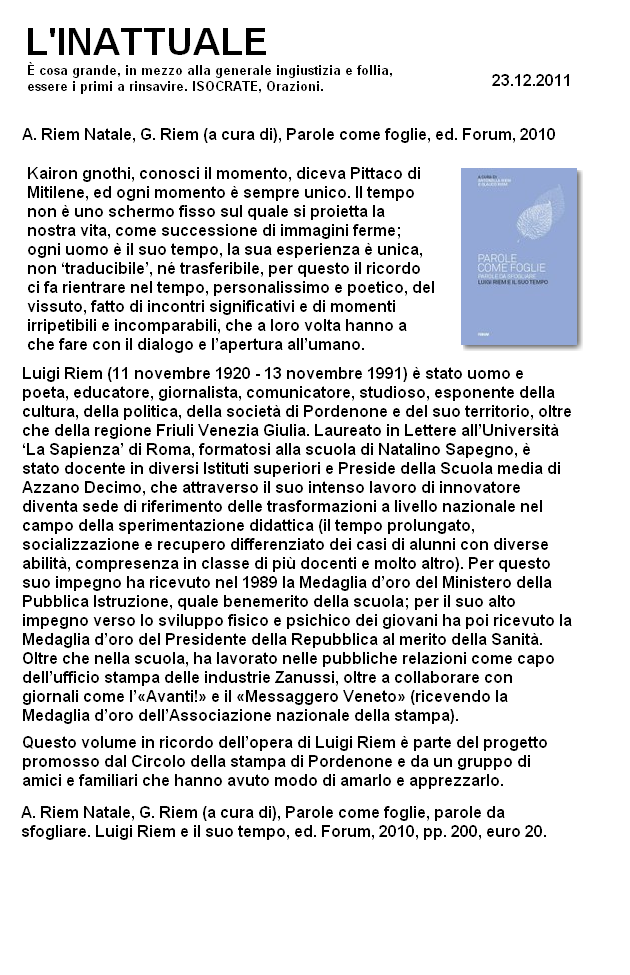 sottotitolo: Luigi Riem e il suo tempo