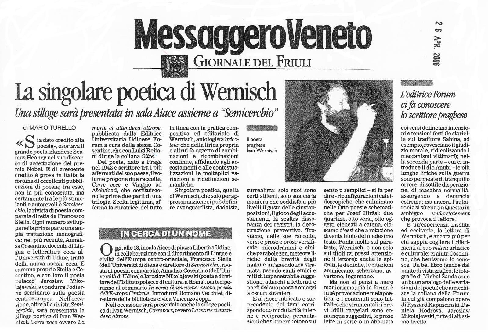 Il volume riunisce due parti di una trilogia: Proslýchá se (Corre voce, 1996) e Cesta do Ašchabadu neboli Pumpke a dalajlámové (Viaggio a Ašchabad ovvero Pumpke e i dalai lama, 1997, 2000). Contiene prose, poesie, microdrammi dall’intonazione surreale e beffarda, punteggiata da fulminei squarci lirici. L’alternarsi di generi diversi crea una sorta di pastiche compositivo in cui prosa e poesia sono intercambiabili. L’assurdità della vita quotidiana, raccontata in una dimensione onirica e straniante, viene accostata con sarcasmo dissacrante allo sberleffo che colpisce icone di miti nazionali, alla rivisitazione di miti tribali, alla denuncia di follia e violenza della storia. Numerosi i personaggi: accanto a vari ‘grand’uomini’ (come Gabriele D’Annunzio o il poeta ceco Jaroslav Vrchlický), sfilano savi arabi e orientali, sciamani, l’esploratore Knud Rasmussen, l’Unterscharführer delle SS Pumpke e così via. Completano il volume le fotografie di Michal Šanda.
