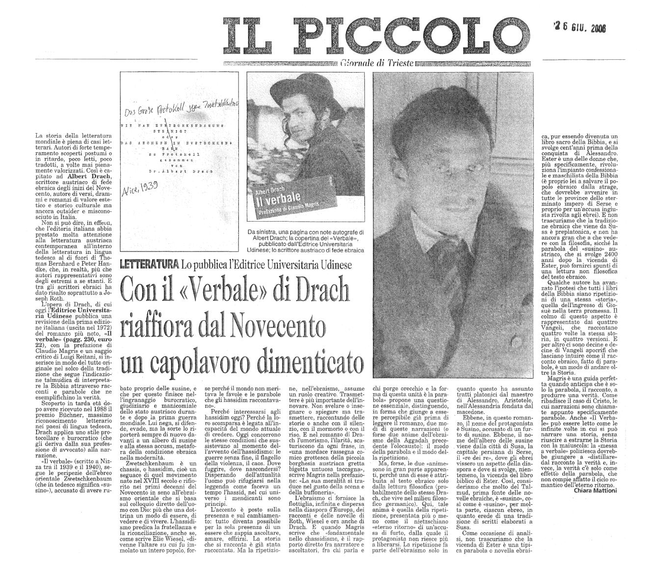 Scritto durante gli anni dell’emigrazione in Francia, ma pubblicato solo nel 1964, il volume è il primo grande romanzo di Albert Drach. Sorpreso a vagabondare sotto un susino, l’ebreo chassid Schmul Leib Zwetschkenbaum, che di quell’albero porta il nome, viene accusato di aver rubato dalla pianta alcuni frutti e finisce nella macchina impersonale della giustizia austriaca durante e dopo la prima guerra mondiale, passando per carceri, manicomi e altri inferni della modernità. Come nella più grande letteratura ebraica, la fuga dallo shtetl e l’‘ingresso nella storia’ coincidono con una minaccia dell’individuo, esposto ai rischi di una corruzione della sua integrità morale e a un annientamento da parte delle istituzioni sociali.