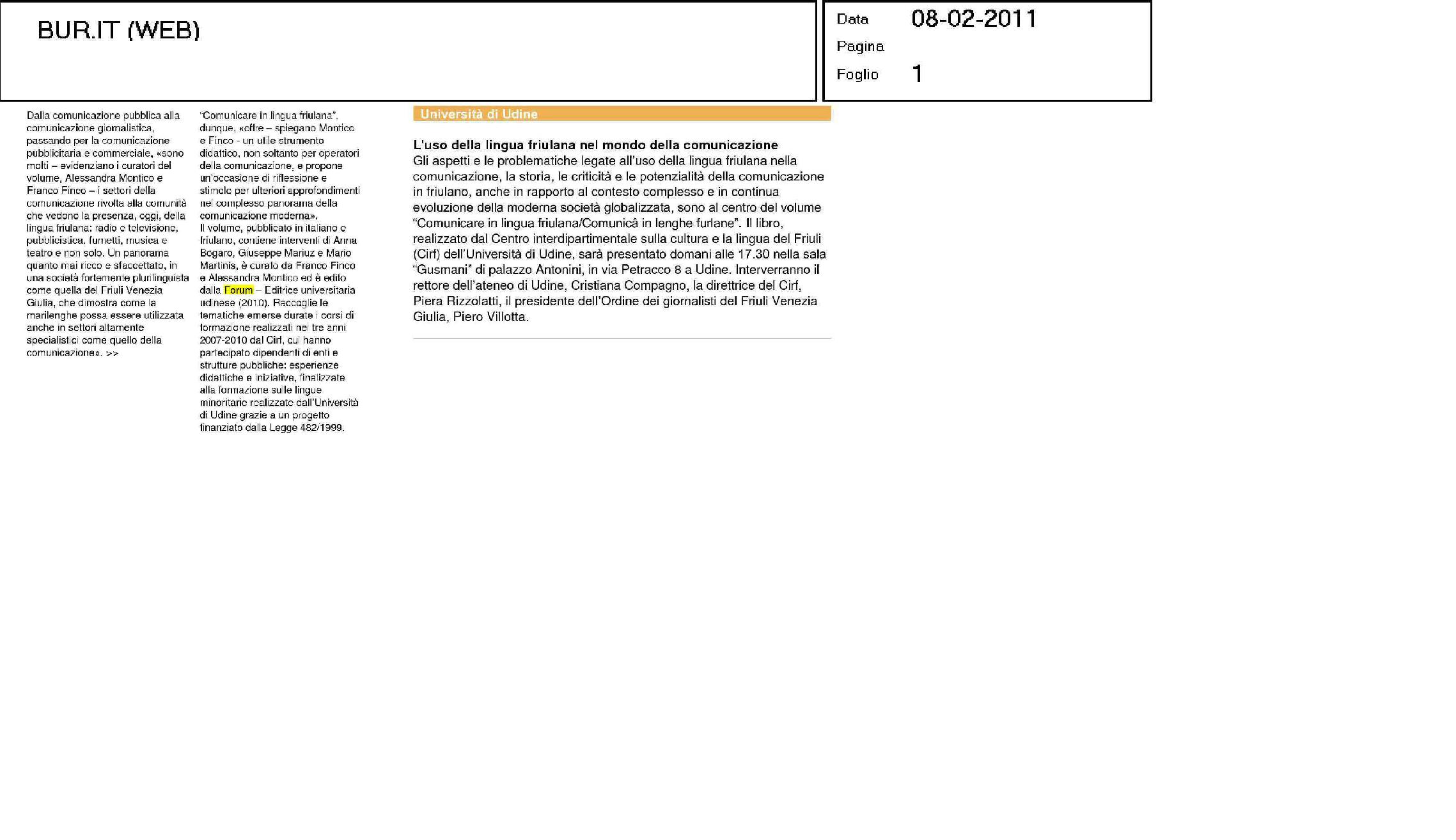 Alessandra Montico si è laureata presso la Facoltà di Lettere e filosofia dell’Università di Udine. Svolge presso il CIRF attività di coordinamento per la formazione linguistica d’ateneo in lingua friulana. Collabora con Radio Uno Rai, sede del Friuli Venezia Giulia, alla realizzazione delle trasmissioni in lingua minoritaria.