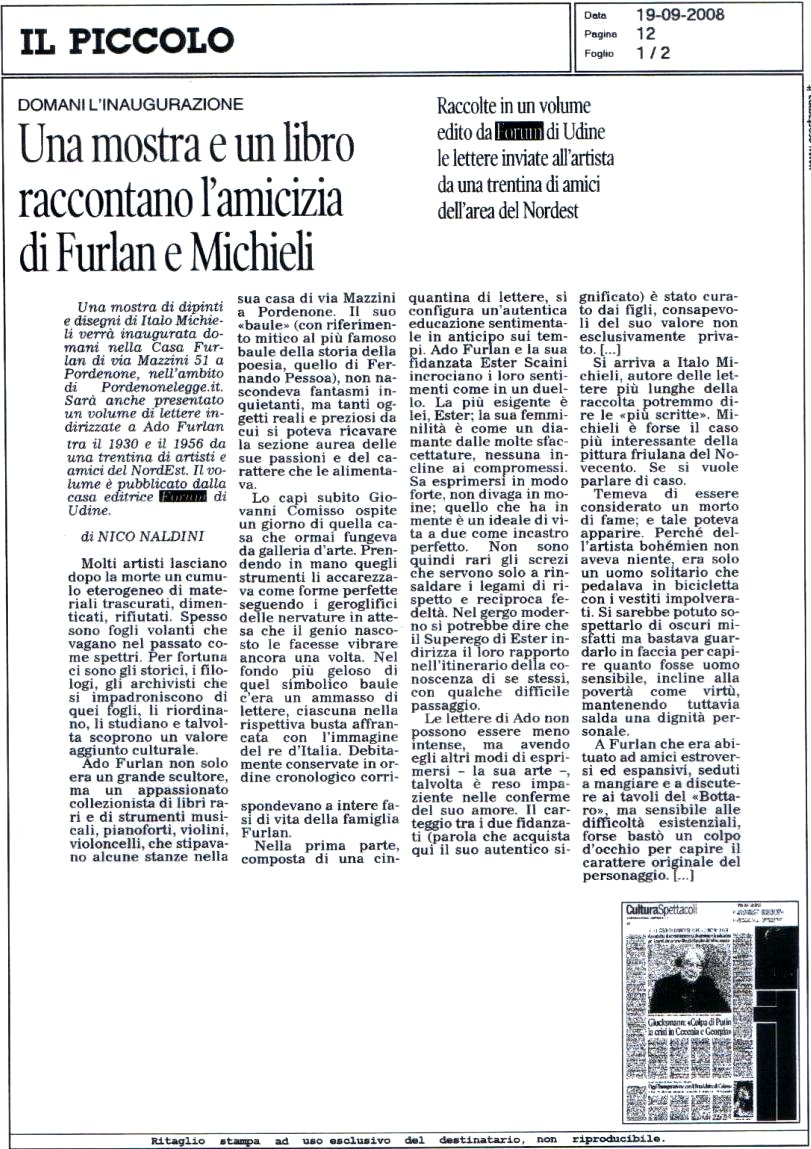 Il volume raccoglie centocinquanta missive indirizzate allo scultore pordenonese Ado Furlan tra il 1930 e il 1956 da una trentina di amici, pittori, scultori e incisori, appartenenti per nascita e formazione al cosiddetto Nord-Est. Disposte in ordine cronologico, esse permettono di seguire le vicende dell’artista dagli anni dell’Accademia all’immediato dopoguerra, allorché diventerà uno dei principali promotori della vita artistica e culturale della sua città natale.