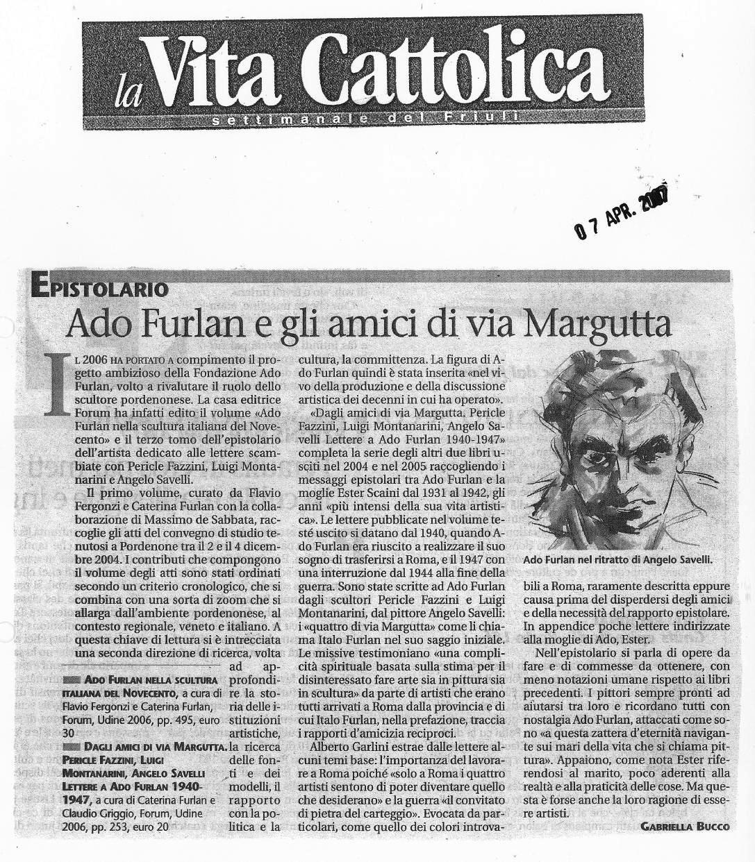 Il volume, che costituisce idealmente la ‘terza parte’ della raccolta epistolare del carteggio dello scultore pordenonese Ado Furlan, riunisce le lettere inviate all’artista dagli amici romani Pericle Fazzini, Luigi Montanarini e Angelo Savelli tra il 1940 e il 1947. La scelta di disporre in ordine cronologico l'ottantina di missive conservate nell’archivio familiare permette di seguire in dettaglio la vita di un gruppo di artisti, due pittori e due scultori, diversi per formazione e linguaggio, ma accomunati dagli stessi ideali e da un vivo senso dell’amicizia. Inoltre, la loro sorprendente mobilità (Grottammare, Pizzo Calabro, Pordenone, Roma, Spalato, Zara, Cagnes-sur-Mer, Wohlen, ecc.) contribuisce ad accrescere l’interesse di uno scambio epistolare incominciato all’indomani dell’approdo di Furlan nella capitale e interrottosi nel dopoguerra, in seguito alla sua sofferta decisione di rinunciare a stabilirsi a Roma.