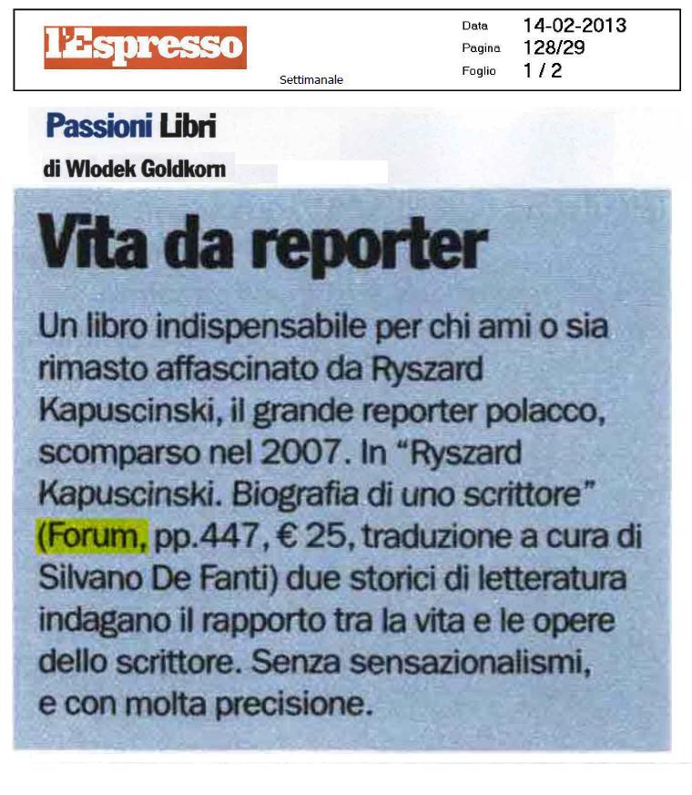 Quasi a voler confutare questa riflessione di Ryszard Kapuściński sulla possibilità di ricostruire in maniera coerente ed esaustiva il proprio passato, il volume di Beata Nowacka e Zygmunt Ziatek rappresenta il primo, e per ora unico, studio condotto attraverso il metodo della 'biografia creativa', ossia tramite la ricerca e l’analisi delle interrelazioni tra la vita e le opere di uno dei più celebri reporter del XX secolo. Frutto dei vari incontri degli autori con Kapuściński e con molti testimoni di diversi momenti della sua vita, il volume ripercorre la nascita, l’evoluzione dell’attività e la carriera internazionale di questo straordinario autore; lo segue mentre partecipa alle trasformazioni del mondo e affronta le nuove sfide che ne conseguono, cogliendo i mutamenti della sua visione della società e della sua scrittura: «Il reporter cambia il mondo. La traiettoria della storia coincide con la traiettoria della vita del reporter» (R. Kapuściński, in una delle sue ultime conversazioni con gli autori).