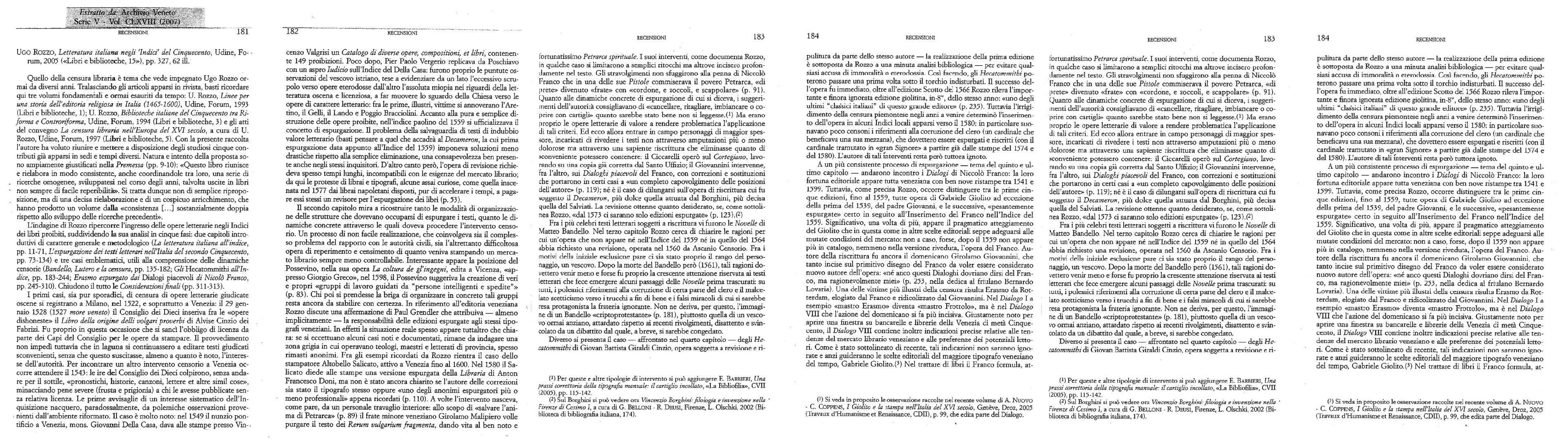 Nel volume vengono affrontati i temi della censura e dell’espurgazione delle opere letterarie nel XVI secolo, che hanno riguardato e spesso hanno mutato il contenuto di tanti testi importanti, da Dante a Petrarca, Boccaccio, Castiglione, Aretino, Doni, Gelli e altri. Sulla base degli 'Indici', prima ‘locali’, poi universali, usciti in Italia, si ricostruiscono le norme definite dalla Chiesa per controllare la ‘correttezza’ della produzione letteraria, soprattutto prestando attenzione all’affermarsi, dopo l’Indice del 1564, della procedura dell’espurgazione, che poteva stravolgere il dettato delle opere originali, determinando edizioni spesso ‘corrette’ dai censori senza che il lettore ne fosse avvertito. Particolare attenzione è poi dedicata alle vicende di tre autori, Matteo Bandello, Giovan Battista Giraldi Cinthio e Nicolò Franco, le opere dei quali finiscono all’Indice per ragioni molto diverse tra loro, ma che consentono di evidenziare le varie e difficili situazioni in cui si trovavano a lavorare gli scrittori del Cinquecento.