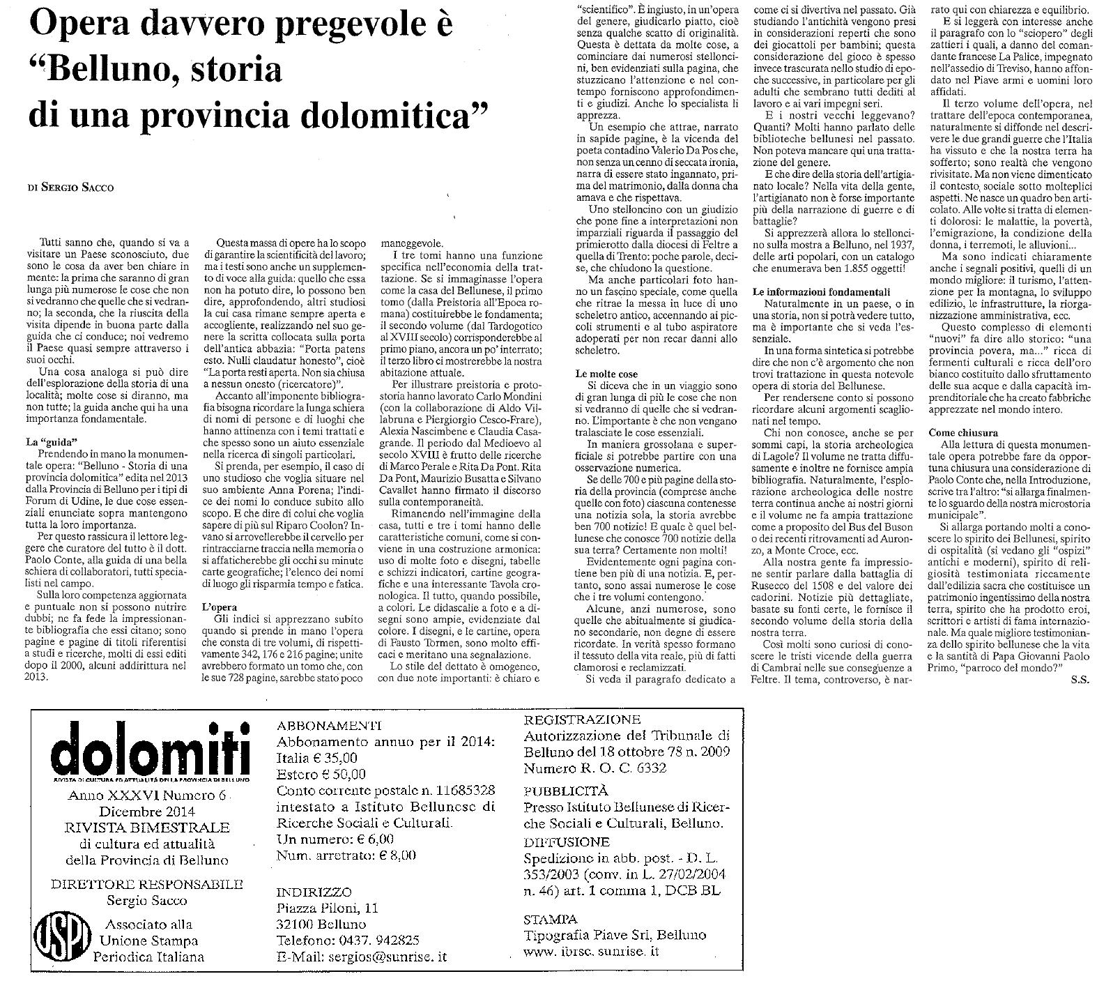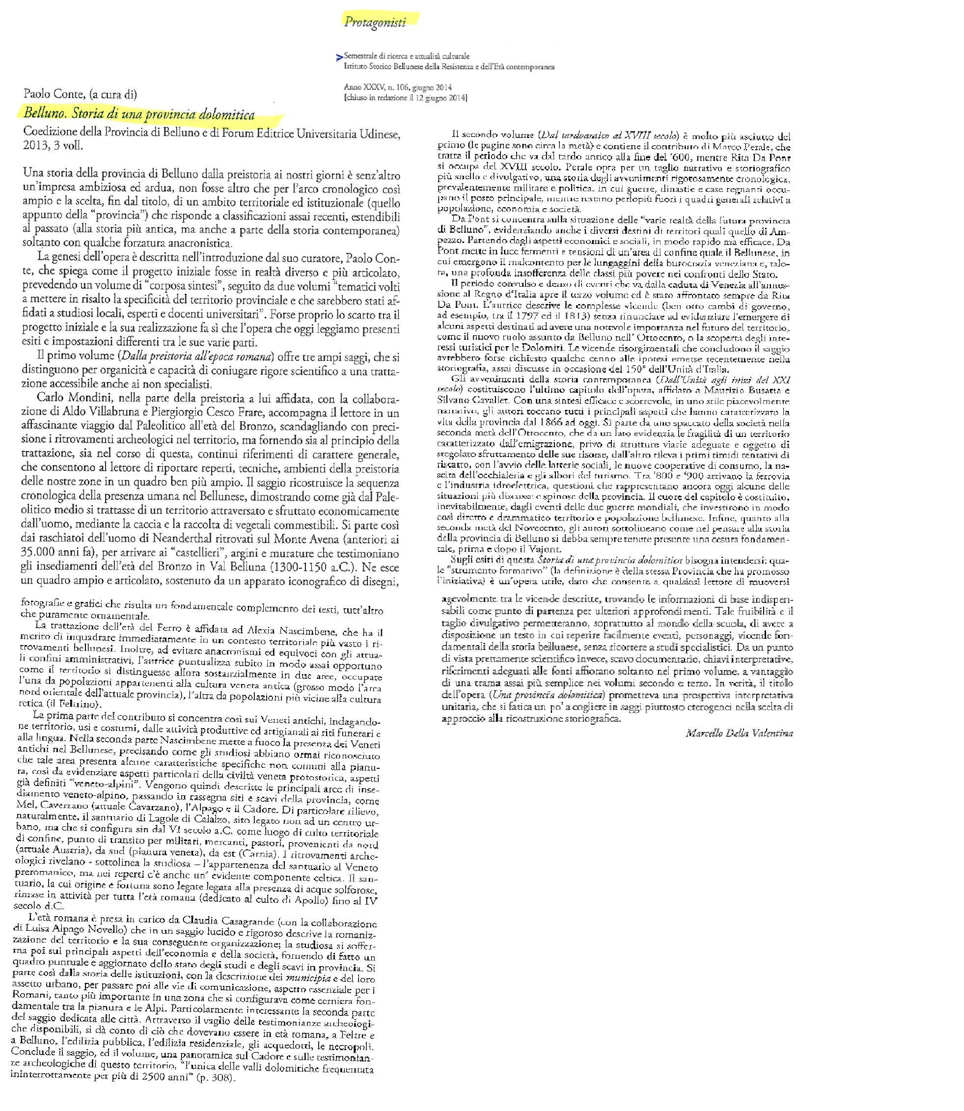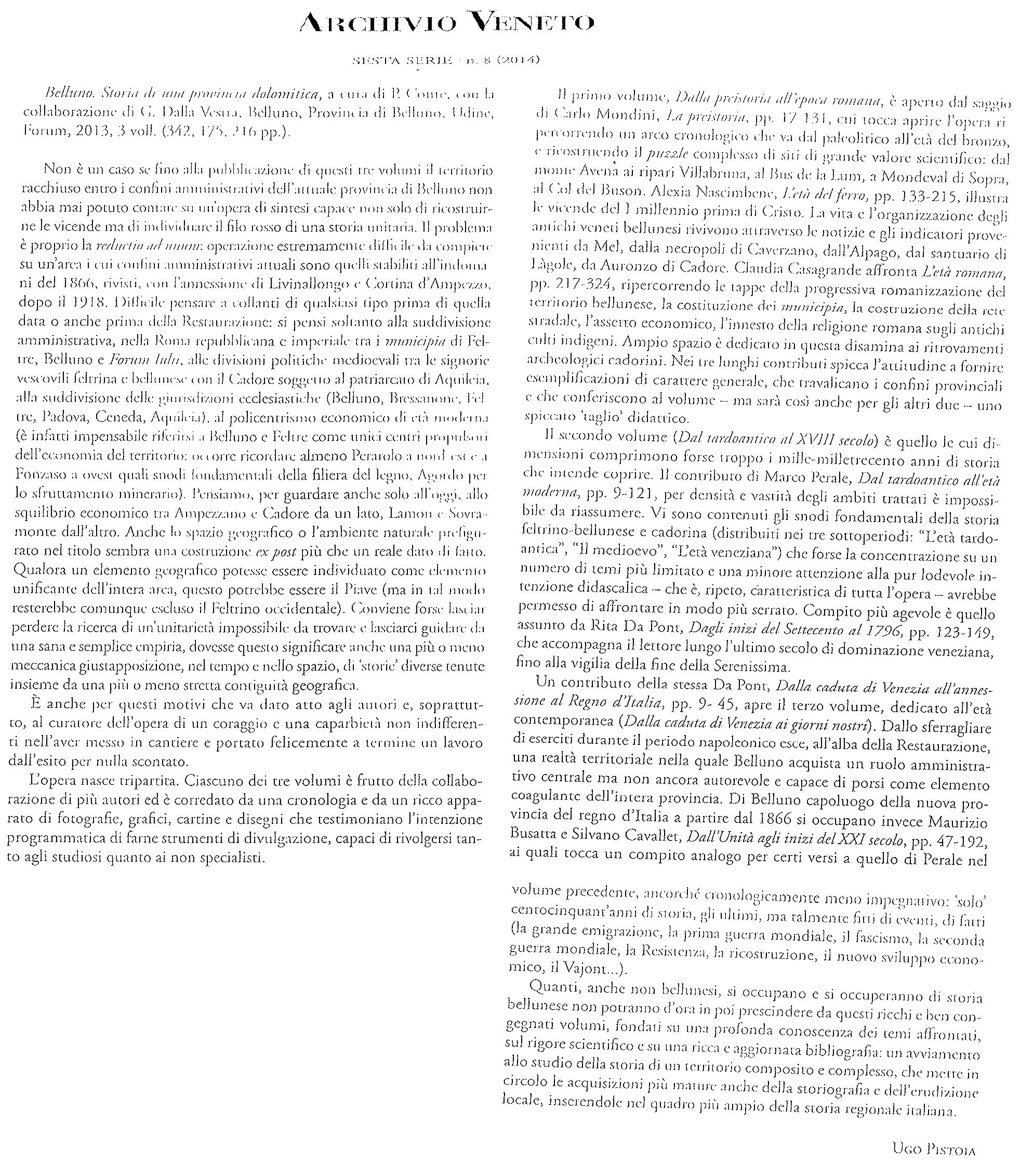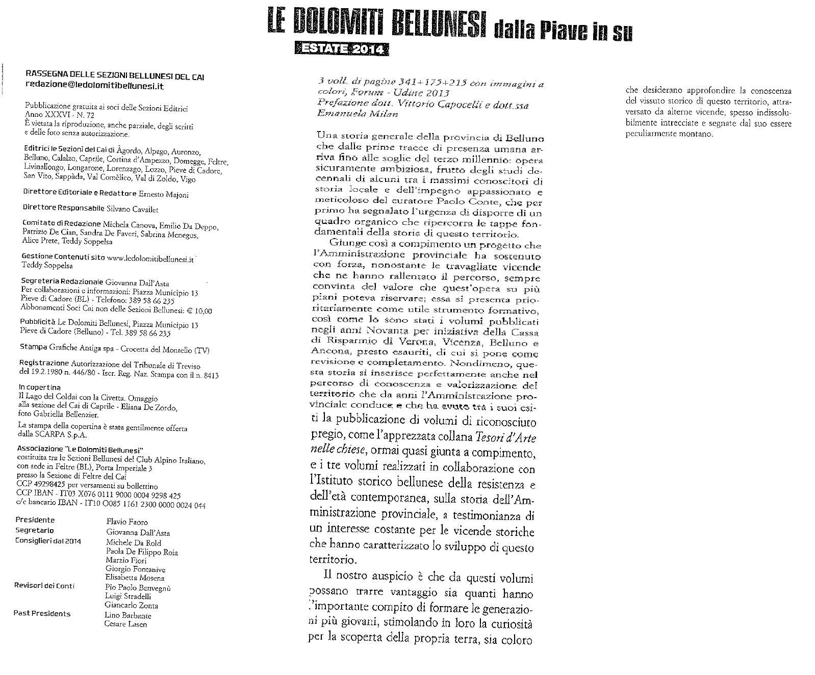 L'opera, suddivisa in tre volumi raccolti in un cofanetto ('Dalla preistoria all'epoca romana', 'Dal tardoantico al XVIII secolo' e 'Dalla caduta di Venezia ai nostri giorni'), ricostruisce la storia della Provincia di Belluno dalle origini ai nostri giorni. Vengono proposti una serie di approfondimenti di carattere storiografico, condotti sulla base di un ampio materiale storico-documentale e accompagnati da un ricco apparato iconografico, i quali svelano le complesse stratificazioni attraverso cui ha preso forma l'identità culturale, sociale ed economica di questo territorio montano la cui specificità rimane rilevante.