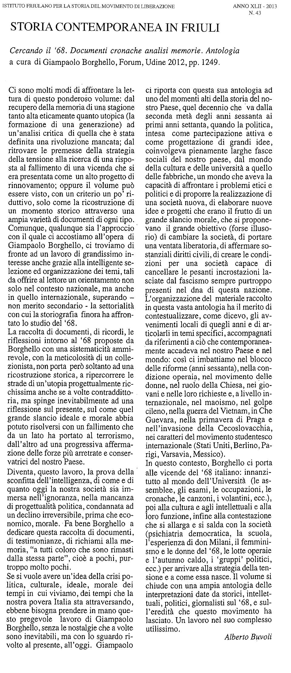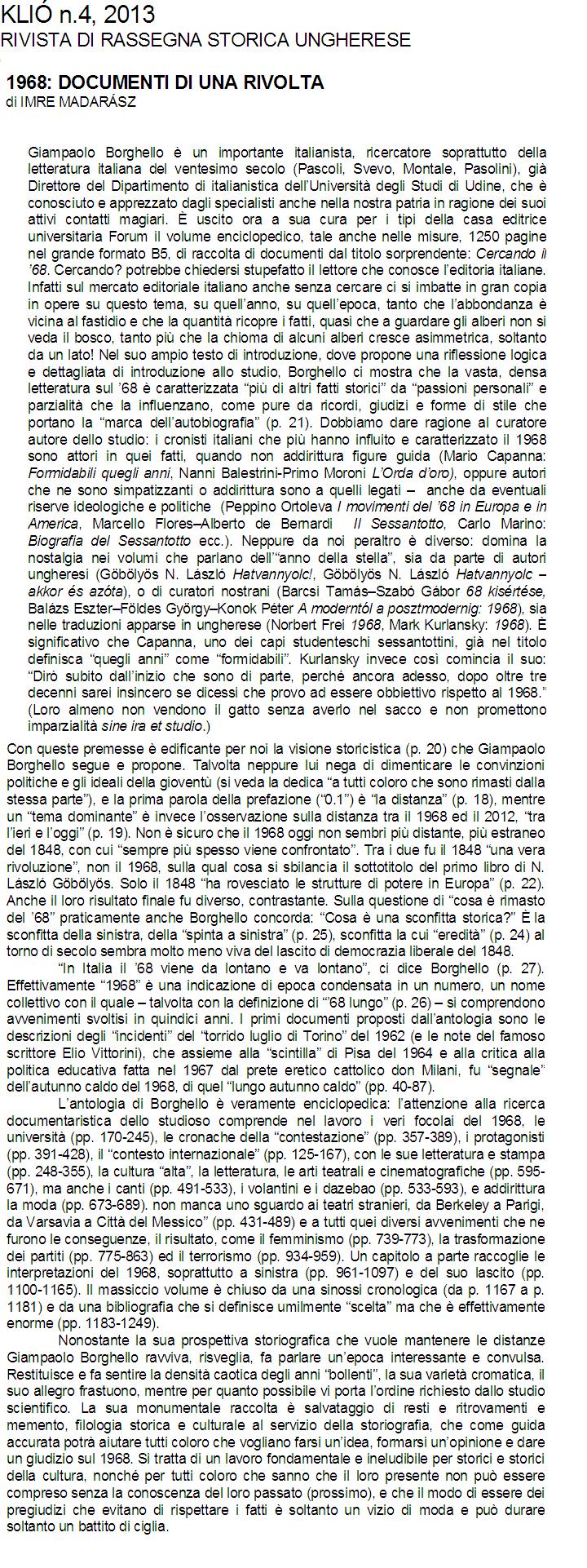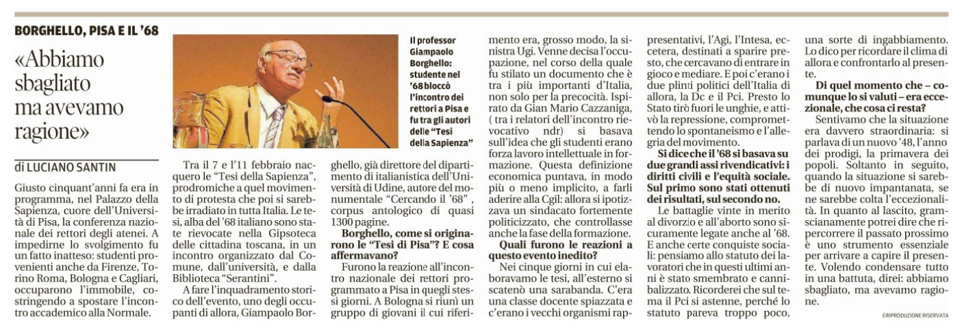Giampaolo Borghello, nato a Verona nel 1946, ha studiato e si è perfezionato alla Scuola Normale Superiore di Pisa. Nella città toscana ha vissuto gli anni sessantotteschi. È stato per molti anni professore ordinario di Letteratura italiana e Direttore del Dipartimento di Italianistica dell’Università di Udine. Ha diretto la collana ‘Letteratura e problemi’ (LP) dell’editore Zanichelli di Bologna. Tra le sue principali pubblicazioni ricordiamo: Letteratura e marxismo (Zanichelli, 1974); Interpretazioni di Pasolini (Savelli, 1977); La coscienza borghese. Saggio sulla narrativa di Svevo (Savelli, 1977); Linea rossa. Intellettuali, letteratura e lotta di classe 1965-1975 (Marsilio, 1982); Il simbolo e la passione. Aspetti della linea Pascoli-Pasolini (Mursia, 1986); Il getto tremulo dei violini. Percorsi montaliani (Paravia Scriptorium, 1999). Ha curato l’edizione commentata di Myricae del Pascoli (Zanichelli, 1996).