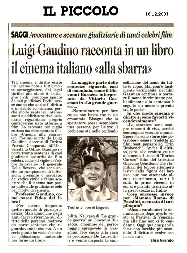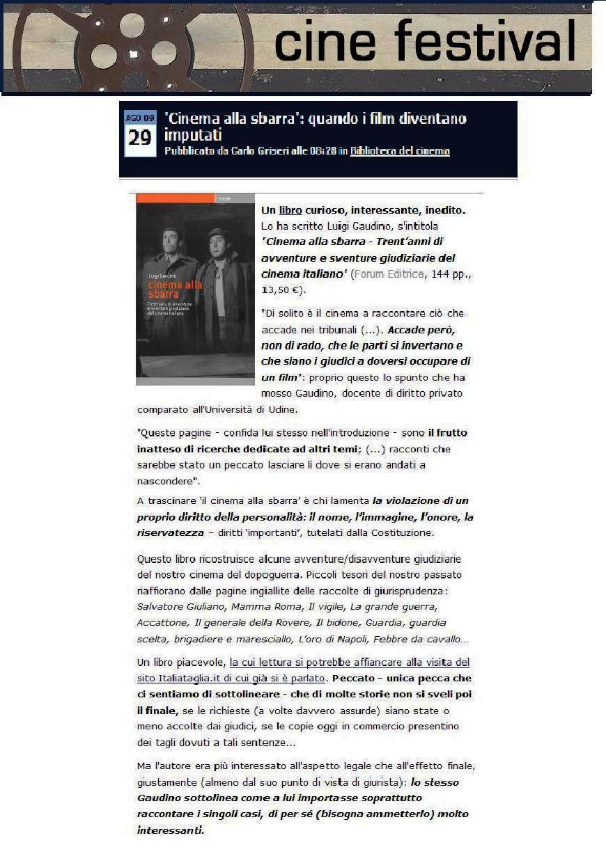 Questo libro ricostruisce alcune avventure/disavventure giudiziarie del nostro cinema del dopoguerra. Piccoli tesori del nostro passato riaffiorano dalle pagine ingiallite delle raccolte di giurisprudenza: