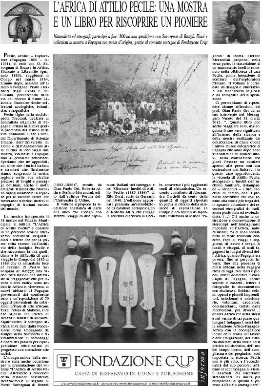 sottotitolo: Attraverso i resoconti della missione scientifica Brazzà-Pecile al seguito di Pietro Savorgnan di Brazzà (1883-1886)