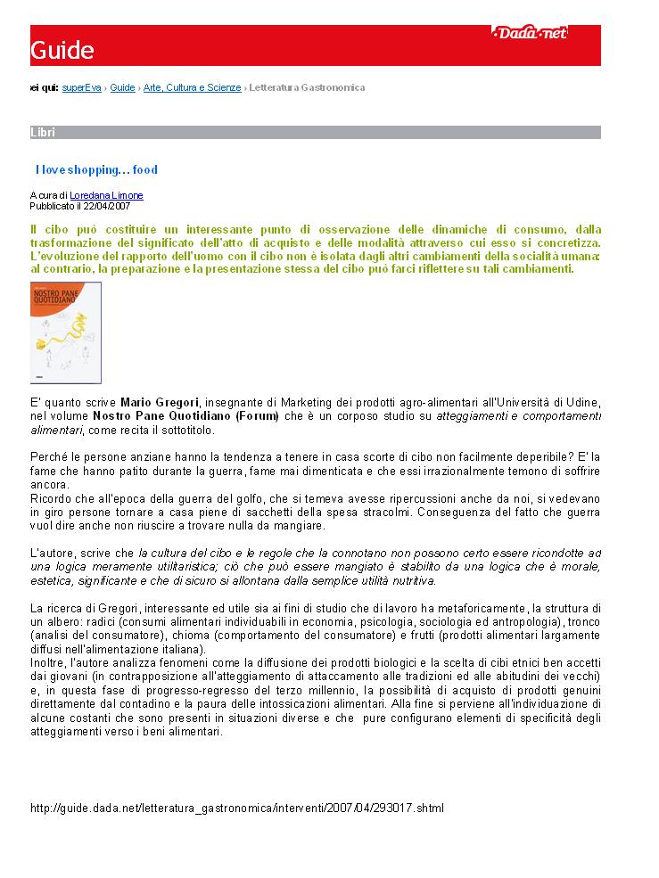 I consumi alimentari rappresentavano un tempo esclusivamente il soddisfacimento di un bisogno primario, mentre oggi hanno acquisito, in termini di massa, funzioni diverse che toccano lo spazio relazionale ed esprimono quello dei valori, come articolazione del rapporto con il sé, garanti della salute e manifestazione di status. Sono, ad un tempo, attività economica, pratica sociale e metafora culturale. Il volume, da un lato, focalizza i consumi alimentari nel quadro più ampio degli studi sul consumer behaviour; dall’altro, analizza gli atteggiamenti e i comportamenti nei confronti di alcuni beni di largo consumo e rispetto a fenomeni relativamente nuovi, quali la diffusione dei prodotti biologici, la comparsa delle cucine etniche, la possibilità di acquistare ‘dal contadino’ e le paure di intossicazione alimentare.