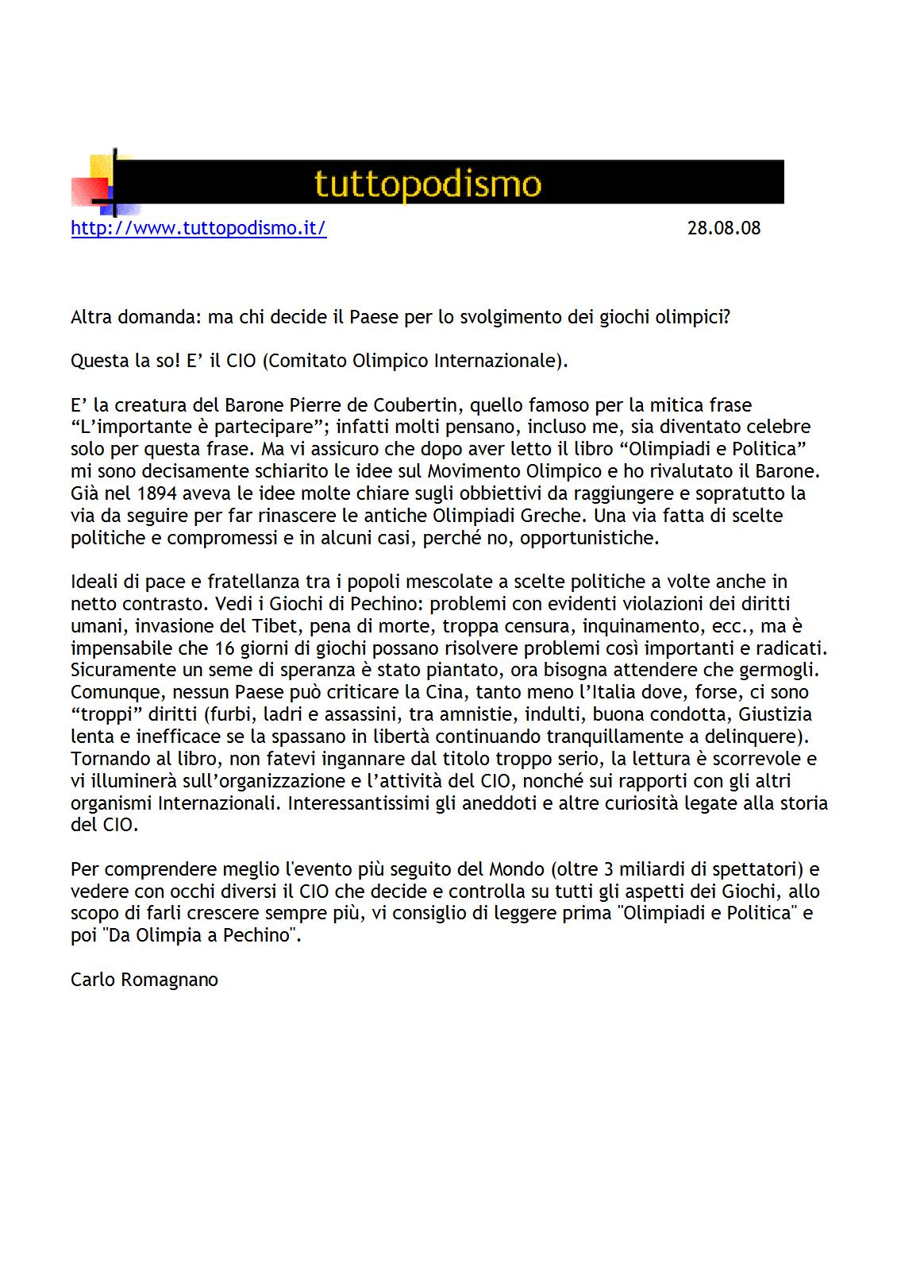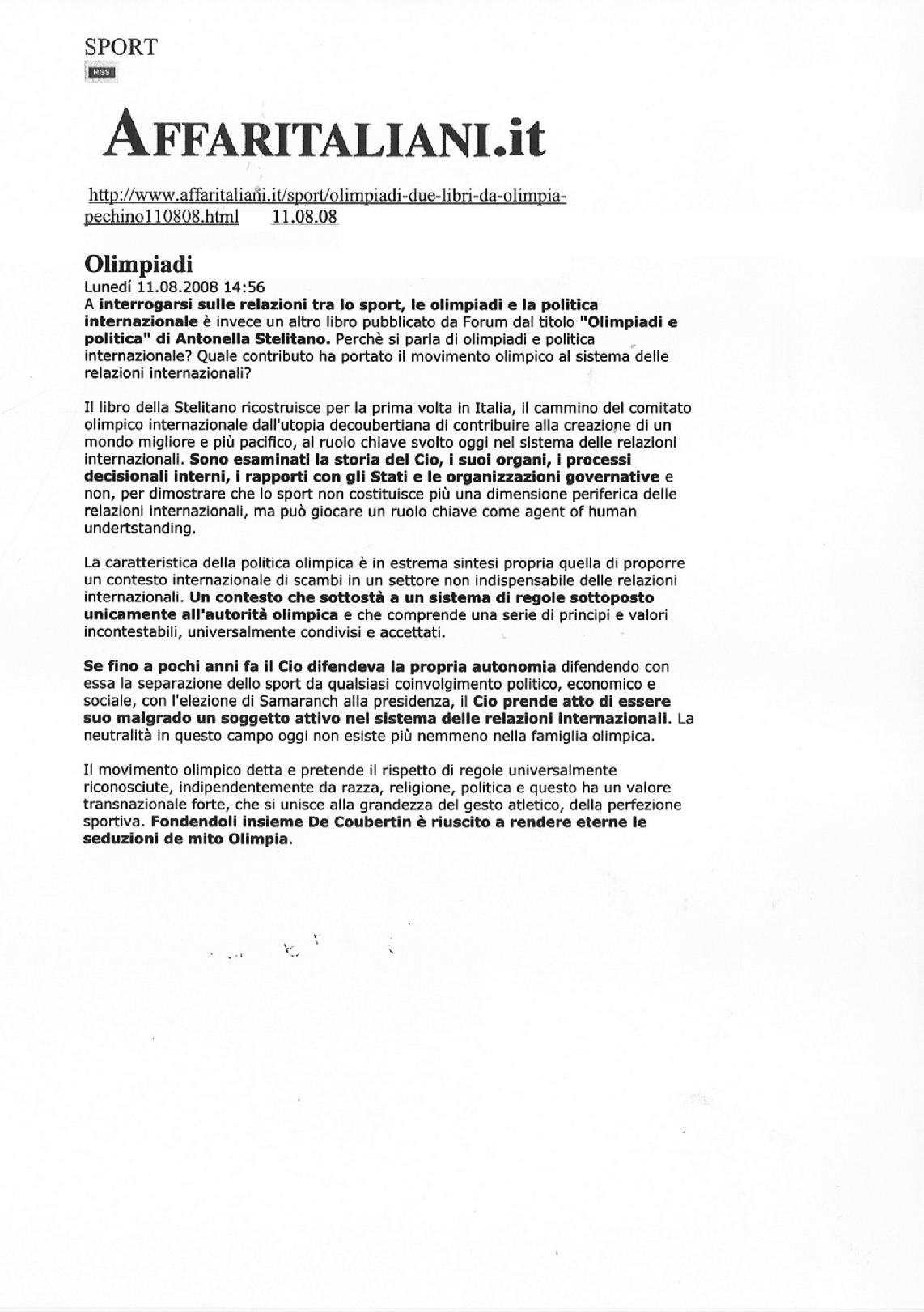 titolo: Olimpiadi e politica