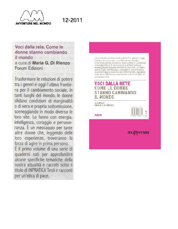 Trasformare le relazioni di potere tra i generi è oggi l’ultima frontiera per il cambiamento sociale. In tanti luoghi del mondo, le donne sfidano condizioni di marginalità o di vera e propria sottomissione, sceneggiando in modo diverso le loro vite. Lo fanno con energia, intelligenza, coraggio e perseveranza. È un messaggio per tante altre donne che, leggendo delle loro esperienze, troveranno la forza di agire in prima persona.