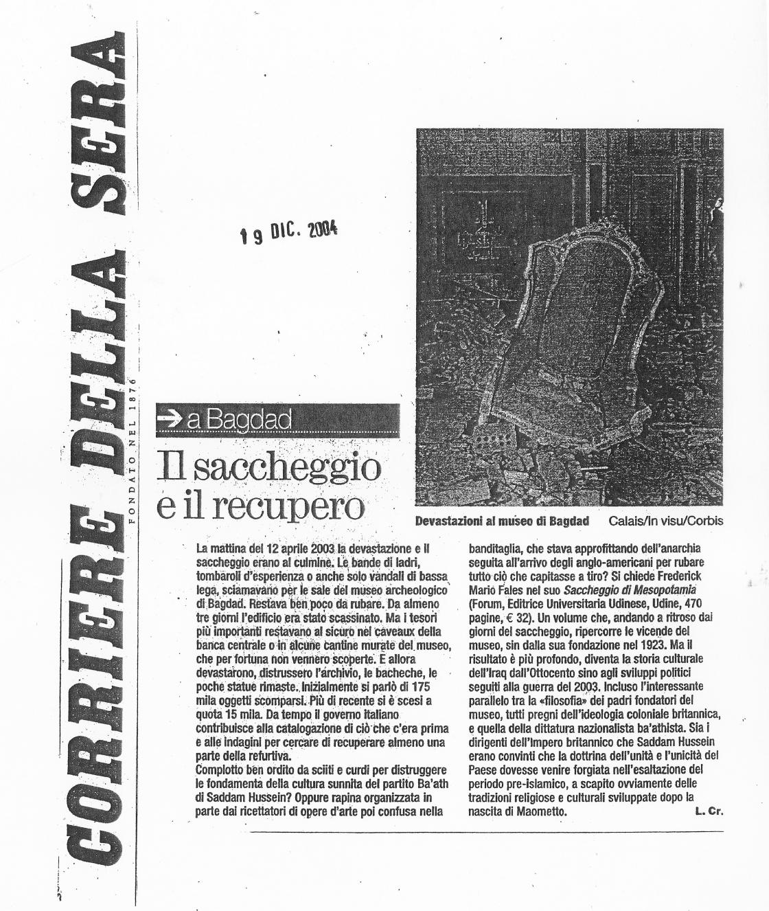 Corriere della Sera | 19.12.2004 | Il saccheggio e il recupero | Lorenzo Cremonesi |