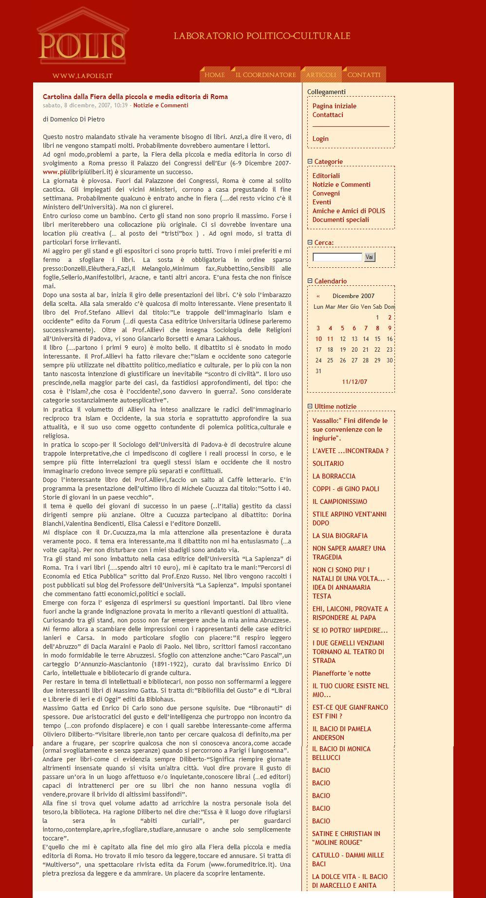 laPolis.it | 08.12.2007 | Cartolina dalla Fiera della piccola e media editoria di Roma | Domenico Di Pietro |