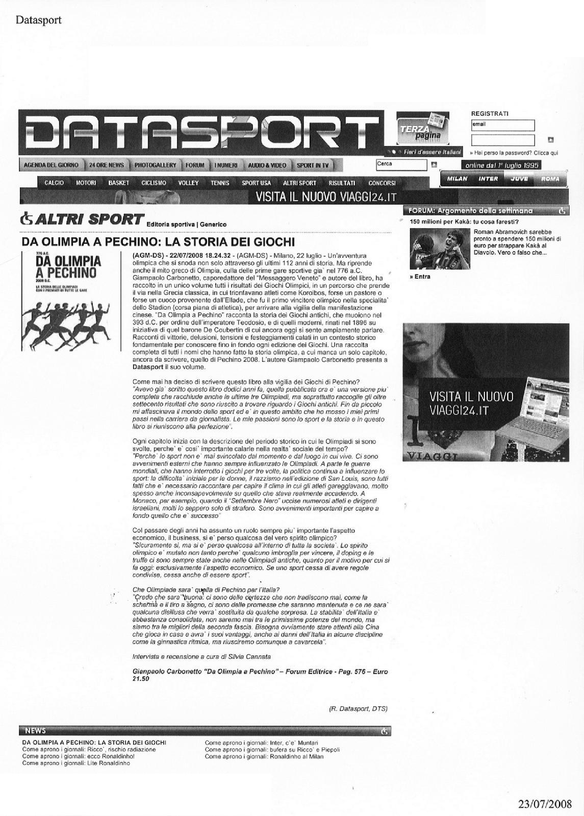 Mangialibri | 05.09.2008 | Da Olimpia a Pechino | David Frati |