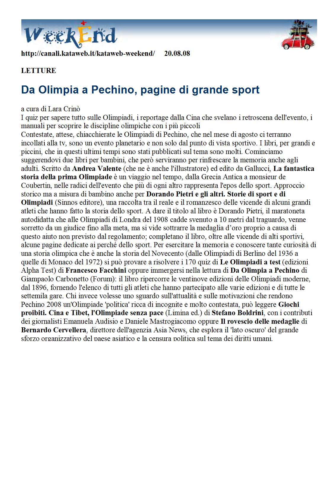 WeekEnd | 20.08.2008 | Da Olimpia a Pechino, pagine di grande sport | Lara Crinò |