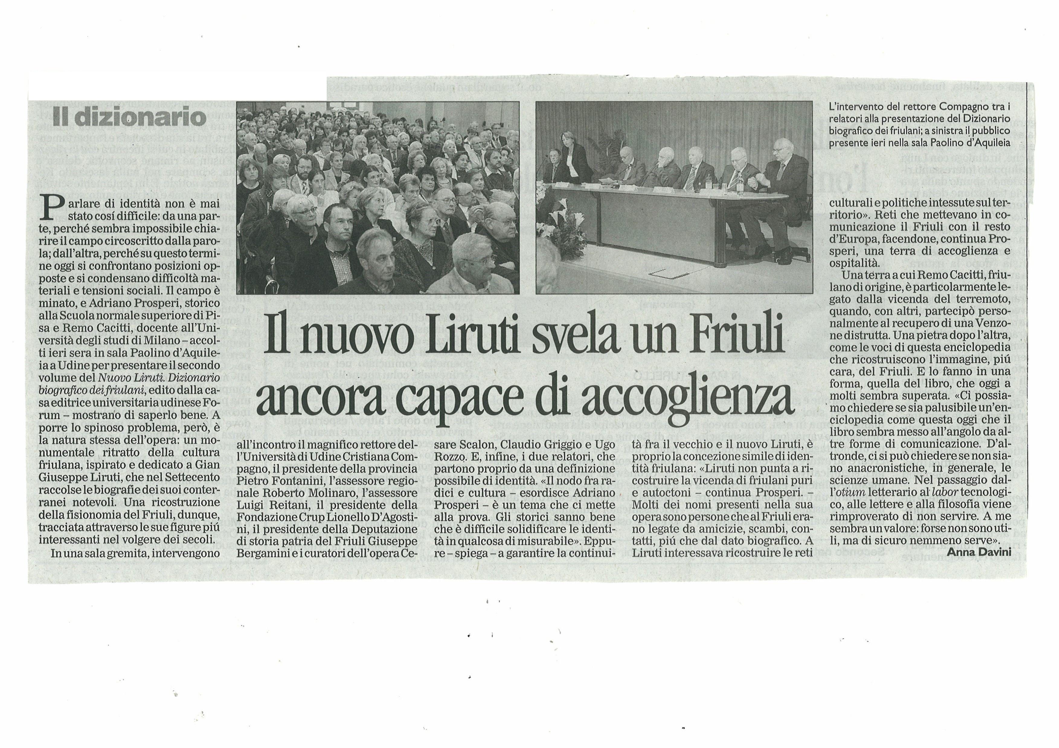 Il Piccolo | 08.12.2009 | Nuovo Liruti, 350 anni della Patria del Friuli |