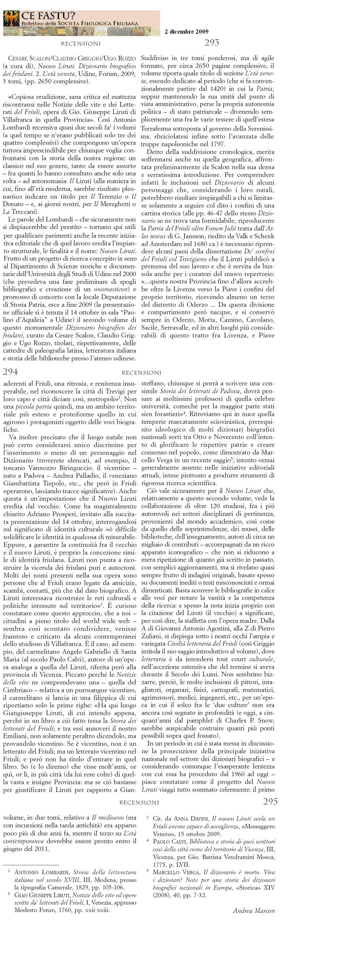 Ce fastu? | 01.12.2009 | Nuovo Liruti. Il dizionario biografico dei friulani. 2.L'età veneta | Andrea Marcon |