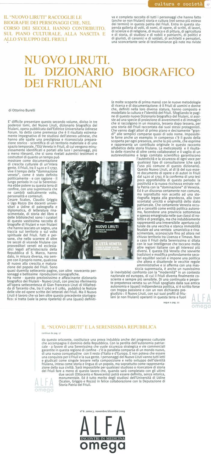 Alfa Omega - Incontri In Medicina | 01.12.2009 | Nuovo Liruti. Il dizionario biografico dei friulani. | Ottorino Burelli |