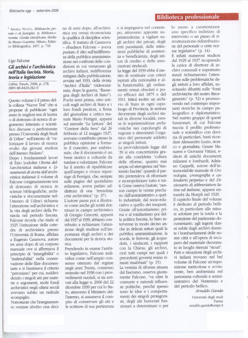 Biblioteche oggi | 01.09.2009 | Gli archivi e l'archivistica nell'Italia fascista. Storia, teoria e legislazione | Arnaldo Ganda |