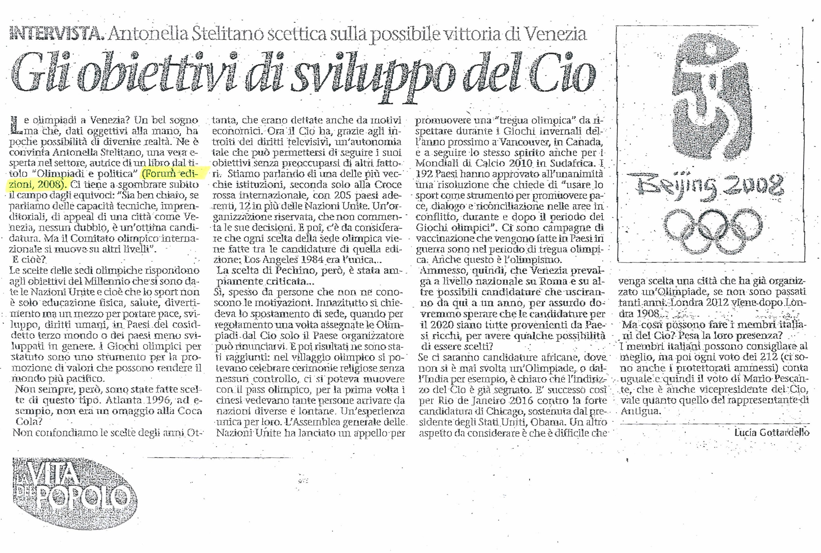 La Vita del Popolo | 08.11.2009 | Gli obiettivi di sviluppo del Cio | Lucia Gottardello |