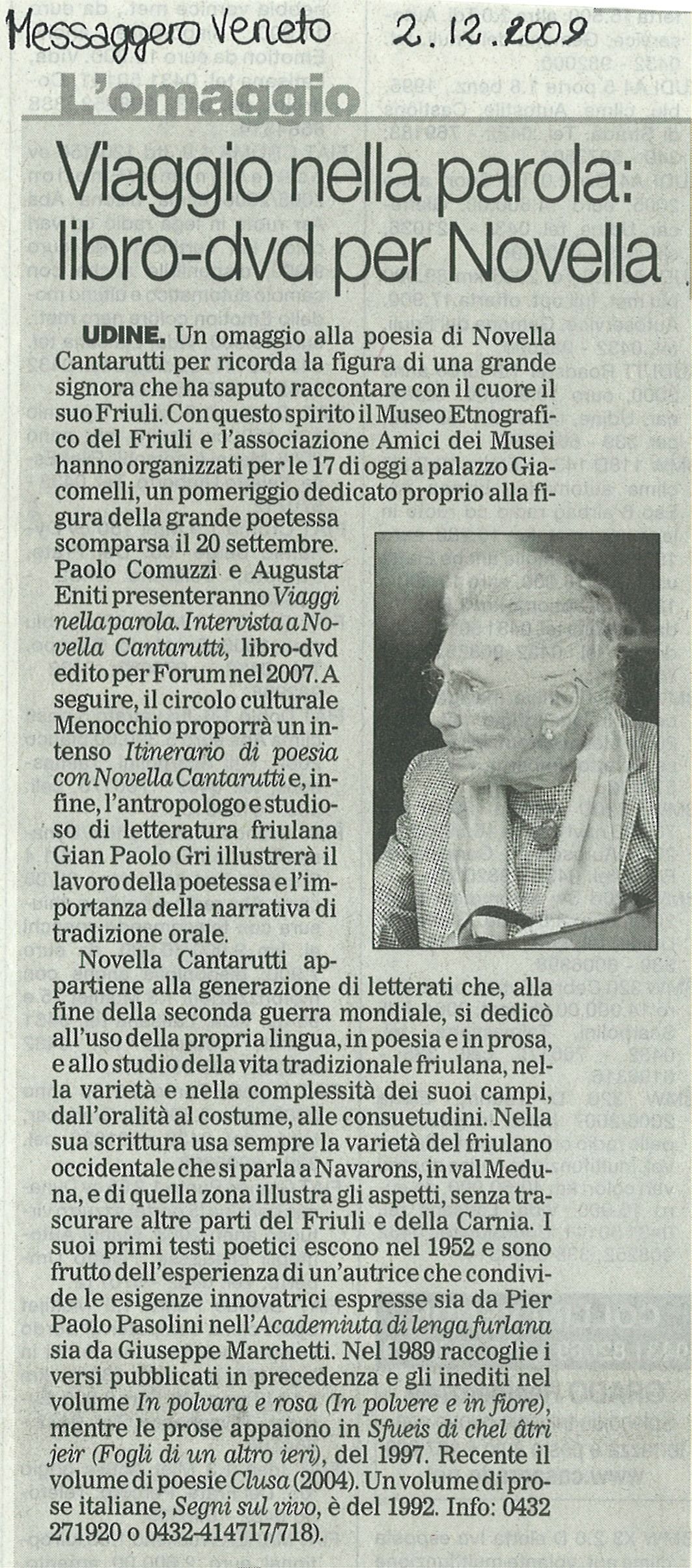 Messaggero Veneto | 21.12.2009 | Viaggio nella parola: libro-dvd per Novella |